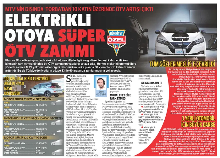 Bakanlıktan yapılan yazılı açıklamada "Bugün Hürriyet Gazetesi'nde Emre Özpeynirci imzası ile "MTV'nin dışında 'Torba'dan 10 katın üzerinde ÖTV artışı çıktı", "Elektrikli otoya süper ÖTV zammı" başlıklarıyla bir haber yayınlanmıştır.