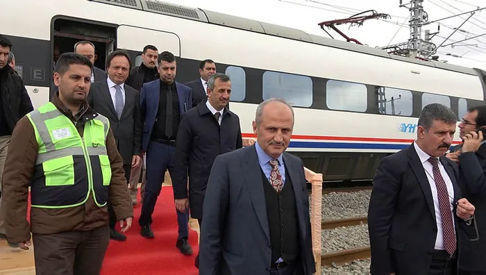 Ankara-Sivas Yüksek Hızlı Tren (YHT) hattını incelemek üzere Kırıkkale'nin Balışeyh ilçesine gelen Ulaştırma ve Altyapı Bakanı Mehmet Cahit Turhan, burada enerjili test sürüşünü gerçekleştirdi. 15 kilometrelik demir yolu hattında test sürüşü yapan Bakan Turhan, çalışmaların son durumu hakkında yetkililerden bilgi aldı.