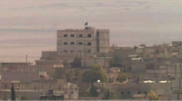 Terör örgütü IŞİD, Halep'e bağlı Kobani (Ayn el Arap) ilçesinin doğu bölgesindeki bir binaya kendi bayrağını astı.