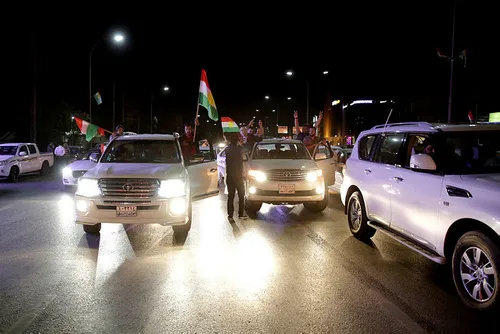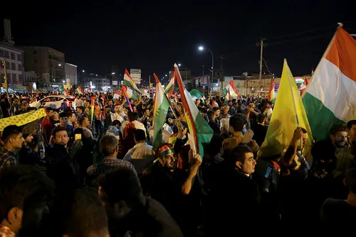 Erbil'in en işlek caddelerinden İskan'da bir araya gelen onlarca kent sakini, Irak güçlerinin kente doğru harekete geçtiği iddiasına karşı gösteri düzenleyip, ellerindeki otomatik silahlarla havaya ateş açmaya başladı.