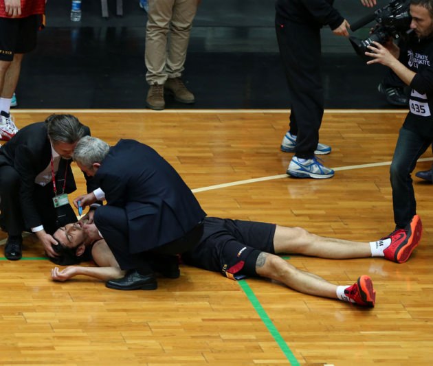 Beşiktaş Integral Forex ile Galatasaray Liv Hospital arasında oynanan derbi maçta iki basketbolcu hastanelik oldu. Rakibinin dizine çenesi çarpan Kerem Gönlüm, pozisyon sonrası yere yığıldı.