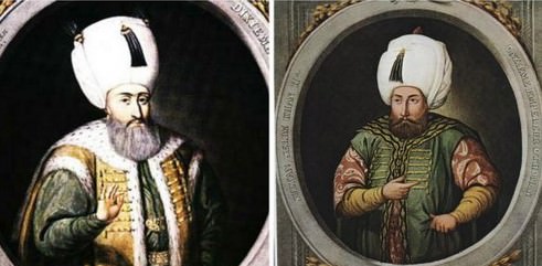 (Resmin solunda Kanuni Sulat Süleyman, sağında ise II. Selim)