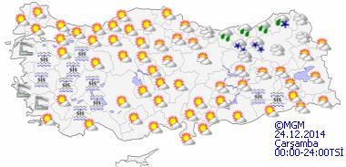 Meteoroloji Genel Müdürlüğü'nden yapılan son değerlendirmelere göre; Güneydoğu Anadolu, Hatay ve Şırnak çevrelerinin yağmur ve sağanak, Bitlis ve Hakkari ile Van'ın güney kesimlerinin karla karışık yağmur ve kar yağışlı olacağı olması bekleniyor. Bu sabah ve gece saatlerinde Marmara ile iç ve doğu kesimlerde yer yer pus ve sis hadisesi, Doğu Karadeniz'in iç kesimleri ile Doğu Anadolu'nun doğusunda buzlanma ve don olayı görüleceği tahmin ediliyor.
