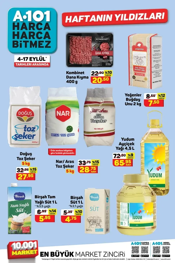A101 aktüel ürünler kataloğu indirimli tam liste halinde yayınlandı. Birbirinden dev indirimlerle bu hafta çeşit çeşit birçok üründe dikkat çeken fırsatlar bulunuyor. Özellikle de gıda ürünlerine özel indirimler yer alıyor. İşte A101 aktüel ürünler kataloğu 11-17 Eylül 2021 indirimli tam liste