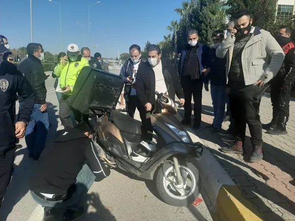 Gelişmelerin ardından Antalya Cumhuriyet Başsavcısı Halil İnal ve yardımcılarının da olay yerine gelmesinin ardından, bomba imha uzmanlarına haber verildi. Hassas burunlu bomba arama köpeğinin de getirildiği olay yerinde, özel kıyafetli bomba imha uzmanı da robotla motosikleti kontrol etmek için hazırlıklara başladı. Adliyeye girişler ve çıkışlar kapatılırken, adliye önündeki tali yolda da trafik akışı engellendi. Güvenlik kameralarını inceleyen adliye personeli motosikleti bırakan kişinin eşkalini belirledi. Adliye içerisinde yapılan arama sonucunda motosiklet sahibi olduğu belirlenen ve pizzacı olduğu öğrenilen Mesut D. bulundu ve adliye dışına çıkarıldı. Dışarıda motosikletinin başında bomba imha uzmanını gören Mesut D. motosikletinin zarar göreceğini düşünerek polislere tepki gösterdi. Ancak, daha sonra sakinleştirildi.