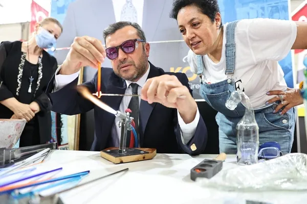 Yüreğir Belediyesi standını ziyaret eden AK Parti Genel Başkan Yardımcısı ve Sosyal Politikalar Başkanı Jülide Sarıeroğlu, canlı performans alevle boncuk yapımı etkinliğine katılarak eğitmenlerden cam yapım teknikleri hakkında bilgi aldı.