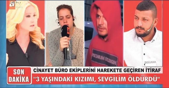 Dormagen kentinde yaşayan Melisa Ünal (22), sosyal medyadan tanışıp Gaziantep'te yanına gittiği sevgilisi Recep Aldemir'in üç yaşındaki kızı Meryem'i öldürdüğünü canlı yayında itiraf etti. Okların üzerine çevrildiği anne, Atv'de yayınlanan 'Müge Anlı ile Tatlı Sert' programında, "Recep, Melisa ağlayınca odaya götürdü. 'Baba yapma' sesi duyunca odaya gittim. Kızım kendinde değildi" dedi.