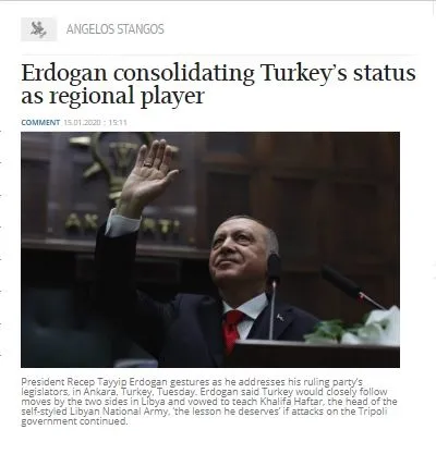 Analizin devamında Ekathimerini, "Daha da kötüsü, ABD ve Avrupa Birliği Yunanistan'ın Avrupa'ya değil, Ortadoğu'ya ait olduğu izlenimini yaratıyor. Ve böylece Yunanistan Ankara'nın insafına bırakılıyor" diye yazdı. "Erdoğan bir şekilde her şeye müdahil olmayı başarıyor" diyen Yunan gazetesi, Erdoğan'ın attığı adımlarla Libya'da kritik jeopolitik bir güç elde ettiği ve bölgede etkisini genişlettiği tespitini yaptı.