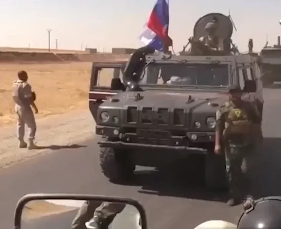 Rakka'dan Haseke bölgesine kadar M4 karayolundaki araçlara eşlik edip trafiğin düzenli bir şekilde akışının denetlendiği devriyelerden birinde, Rus askeri polisine ait zırhlı aracın içerisinden bir YPG'li indi.