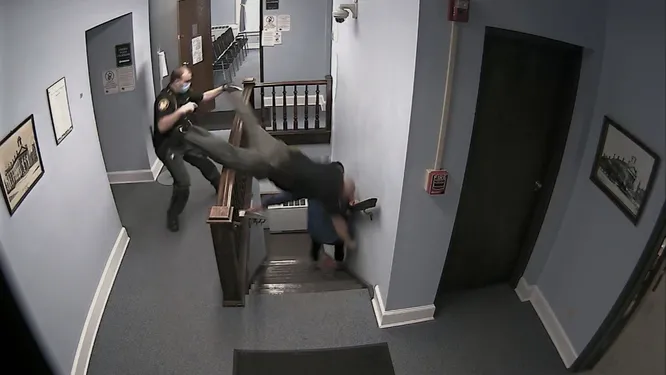 Öte yandan, merdiven boşluğuna atlayan polis memurunun kaburga kemiklerinde kırıklar olduğu ve hastaneye kaldırıldığı belirtildi.