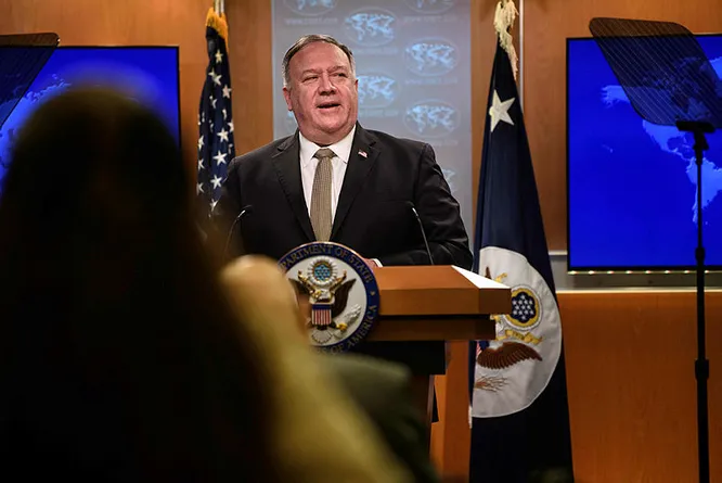 Bakanlık binasında basın toplantısı düzenleyen ABD Dışişleri Bakanı Mike Pompeo, yaptırımların, ICC Başsavcısı Fatao Bensouda ve ICC'nin Tamamlayıcılık ve İşbirliği Bölümü Başkanı Phakiso Mochochoko'yu hedef aldığını belirtti.