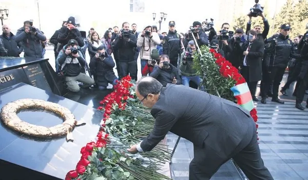 Azerbaycanlılar, Ermenilerin Hocalı'da katlettiği 613 kişiyi anmak için Bakü'deki Ana Feryadı Anıtı'na akın etti. Azerbaycan bayrakları ve posterlerle anıta gelenler, karanfil bıraktı. Bazı ziyaretçiler dualar okurken bazıları da gözyaşlarını tutamadı.