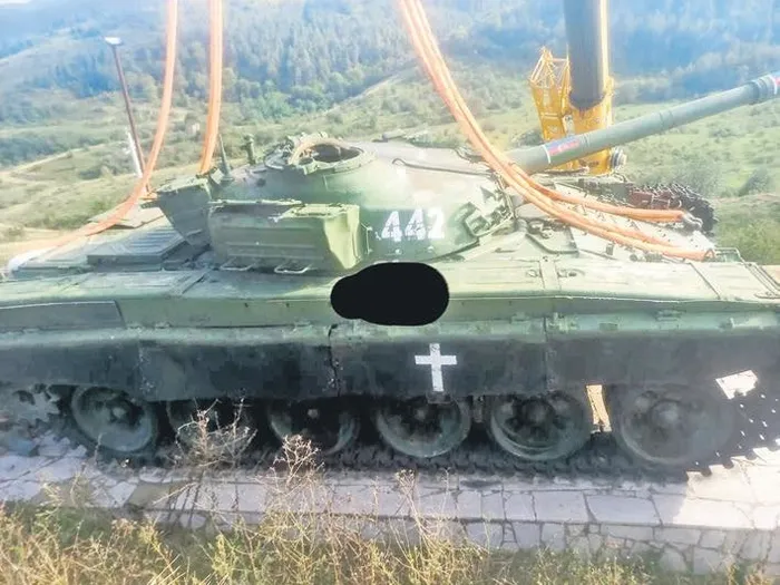 Bakü yönetimi bir yandan da Ermenistan tarafından kurulan yasadışı rejime ait bazı simgesel yapıları kaldırmaya başladı. Sosyal paylaşım sitelerindeki görüntülerden birinde Ermenilerin 1. Karabağ Savaşı ile ilgili "zafer anıtı" olarak kullandığı tankın kaldırılması yer aldı. Şuşa-Hankendi yolunda yer alan tank, bulunduğu yerden vinçle kaldırıldı. Söz konusu tank, 1. Karabağ Savaşı'nda Şuşa'nın Ermenistan güçlerince işgali öncesinde Azerbaycan'ın milli kahramanı Albert Agarunov tarafından vurulmuş, savaş sonrasında Ermeniler tankı "zafer"lerinin sembolü anıt haline getirmişti.