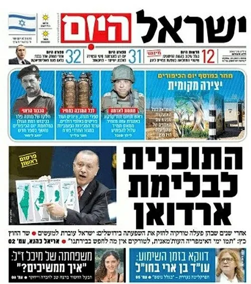 Gazetenin bugünkü sayısında "Erdoğan'ı engelleme planı" başlığı ile manşetten verilen haberde, İsrail Dışişleri Bakanı Israel Katz'ın, Türkiye'nin Doğu Kudüs'te ikamet eden Filistinlilere yönelik insani yardımlarını, kalkınma projelerini, sosyal ve kültürel faaliyetlerini engellemek amacıyla bakanlığına bir plan hazırlaması talimatı verdiğini aktardı.