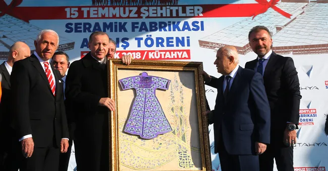 "Bugün açılışını gerçekleştireceğimiz fabrikanın vücuda gelmesindeki en büyük pay, hain darbe girişimini önleyen şanlı şehitlerimize, aslan yürekli gazilerimize, kahraman milletimize ve Başkomutanımız, Önderimiz, Cumhurumuzun Reisi Sayın Recep Tayyip Erdoğan'a aittir. Fabrikamızda sadece seramik değil aynı zamanda gurur üretiyoruz.''