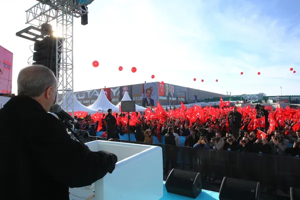 "Türk milleti 15 Temmuz'da bir kez daha tahrip oldu. Milletimizin kanıyla yazdığı tarihi, burada olduğu gibi iş adamlarımız, işçilerimiz de alın terleriyle daha ileriye taşımanın mücadelesini veriyoruz. Eserlerle taçlandırılmamış zaferler eksik kalmaya mahkumdur.''