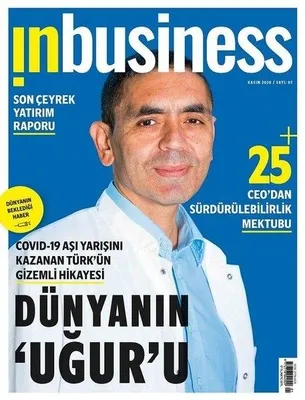 yeni aylık ekonomi dergisi INBUSINESS raflarda yerini aldı. Turkuvaz Medya Grubu bünyesinde yer alan dergi, ilk sayısında Kovid- 19 aşısını geliştiren Türk doktor Prof. Uğur Şahin'i ve Almanya'da kurduğu değeri 22 milyar doları aşan BioNTech şirketinin çarpıcı öyküsünü kapağına taşıdı. Nazar boncuklu kolyesini boynundan hiç çıkarmayan, İskenderun doğumlu bu Türk, BioNTech'in Almanya'nın Mainz kentindeki merkezine bisikletiyle gidip gelen mütevazı bir bilim adamı. Bugünlerde tüm dünya medyasının peşinden koştuğu Şahin, INBUSINESS'a verdiği röportajda, Kovid-19'a karşı geliştirdikleri aşının geliştirme sürecini ve bundan sonraki günlerde dünyayı neler beklediğini anlatıyor. Ekim 2019'da Nasdaq'da halka açıldığında piyasa değeri 3.4 milyar dolar olan BioNTech'in bugünkü piyasa değeri 21 milyar dolar civarında. Bu da Şahin'i dünyanın dolar milyarderleri arasına sokuyor. Genel Yayın Yönetmenliğini deneyimli gazeteci Hülya Güler'in üstlendiği INBUSINESS, 7/24 aktif internet sitesi ve sosyal medya hesaplarıyla hem dijital bir platform hem de yazılı medyanın iddialı oyuncularından biri olmak üzere hibrit bir yapı olarak kurgulandı. Yeni nesil yayıncılığın son örneklerinden ve yeni normalin medyadaki ilk temsilcisi olarak kurgulanan platform, adının gönderme yaptığı gibi, iş dünyasına dair akla gelen her konuşu kapsayan bir içeriğe sahip. Türkiye'nin önde gelen şirketlerinin CEO'ları kaleme aldıkları yazılarla daha iyi bir dünya ve gelecek için neler yaptıklarını anlatırken; dergide 80'i aşkın şirketin, Sürdürülebilir Kalkınma Amaçlarından hangilerini hedeflediklerini gösteren bir araştırmaya da yer veriliyor. Derginin geri dönüştürülebilir sertifikası olan kâğıda basılı ve ambalajı da aynı şekilde geri dönüşüm sertifikalı bir malzemeden üretildi.