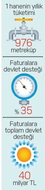 Cumhurbaşkanı Erdoğan'ın ikinci müjdesi olan geri kalan 11 ayda 25 metreküplük doğalgazın devlet tarafından karşılanması düzenlemesi kapsamında ise yapılacak desteklemelerle devletin vatandaşa sağlanacak destek 40 milyar lirayı bulacak.