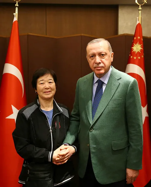 Cumhurbaşkanı Recep Tayyip Erdoğan, Ayla filminin gerçek kahramanı 73 yaşındaki Eunja Kim'i kabul etti.