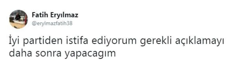 Bunun üzerine, uzun bir konuşma yaparak eleştirilere cevap veren Akşener'in "Başarısızlıkları üstüme alıyorum. Genel Başkan olarak sorumluluk bana aittir. Bu durumda istifa etmem gerekir." diyerek, toplantı salonunundan ayrıldığı ifade edildi.
