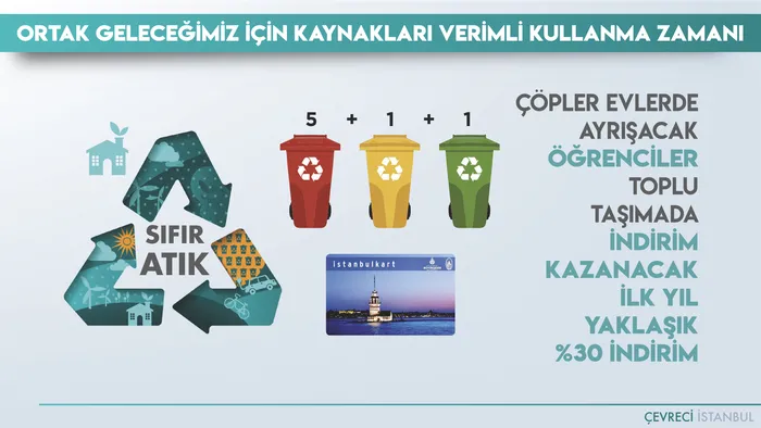 Gençlere yönelik önemli projelerinin olduğunu vurgulayan Yıldırım, "Yeni iş ve girişimcilik imkanlarının yanı sıra öğrencilerimizin ulaşımını indirimli olması için çalışmalarımız var. Artık atık teknolojileri çok gelişti. Sıfır atık politikasıyla çevreci bir şehir tasarlamak üzere ileri biyolojik arıtmadan; kaynağında çöp ayrıştırmaya kadar çok sayıda proje tasarlıyoruz. İstanbul'daki bütün evlere, bütün mahallere sıfır atık projesi kapsamında altyapı kuracağız. İnsanlar atıkları evlerinde ayrıştıracak. Ayrıştırılan atıkları alıp bir kısmını gübreye bir kısmını enerjiye bir kısmını ham maddeye dönüştürmek suretiyle gelir elde edeceğiz. Bu geliri de öğrencilerin biletlerine indirim olarak yansıtacağız. Bu da ilk yıl için yüzde 30 gibi bir indirime tekabül ediyor. Çöp ayrıştırma projesi sayesinde hem İstanbullular hem de çevre kazanacak. Haftanın beş günü organik çöp, bir günü plastik ve cam, bir günü de kağıt çöpler ayrıştırılacak. İstanbullular çöplerini evlerinde ayrıştırdıkça öğrenciler toplu taşımayı daha da indirimli kullanacak" dedi.