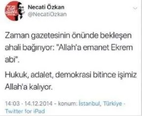 İşte CHP'li İmamoğlu'nun kampaya direktörü Necati Özkan'ın FETÖ'nün yayın organlarını ve FETÖ'nün kumpaslarını öven o paylaşımları;