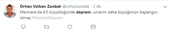 Marmara Denizi'nde gerçekleşen depremin ardından vatandaşlar yaşadıkları hisleri sosyal medyada paylaşmaya başladı. Özellikle en büyük sosyal paylaşım sitelerinden olan Twitter'da vatandaşlar "deprem" etiketiyle yaşadıkları panik anlarını paylaşıyor.