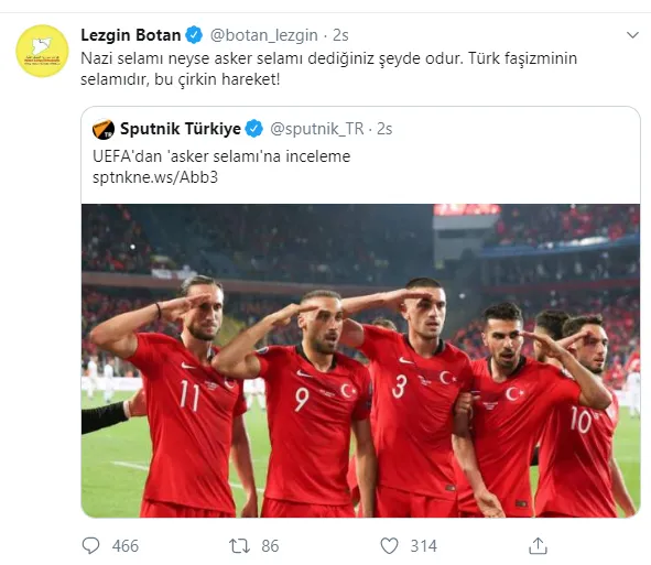 Sosyal medyada sürekli olarak PKK propagandası yapan ve Türkiye düşmanlığı yapan Lezgin Botan'a büyük tepki var. Devletten maaş alarak vatan hainliğinde sınır tanımayan Lezgin Botan hakkında PKK terör örgütü propagandası yapmaktan birçok soruşturma bulunuyor.