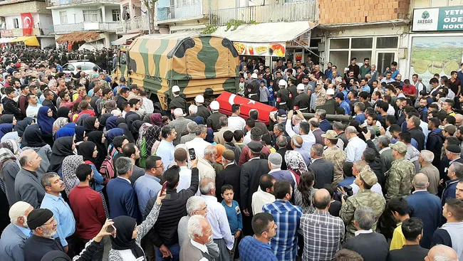 Şehit Mesut Çelik'in cenazesi, öğle namazının ardından kılanan cenaze namazından sonra ilçe şehitliğinde toprağa verildi. Törenin ardından bir grup, ilçe merkezinde yürüyüş yaparak terörü lanetleyen sloganlar attı.