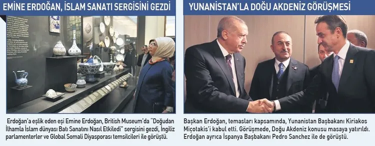 BAŞKAN Erdoğan, oturumun ardından ABD Başkanı Donald Trump ile sürpriz bir görüşme gerçekleştirdi. Yarım saatlik görüşmede Dışişleri Bakanı Mevlüt Çavuşoğlu, Hazine ve Maliye Bakanı Berat Albayrak, Milli Savunma Bakanı Hulusi Akar da yer aldı. Son derece verimli olduğu duyurulan görüşmede ticaret hacmi hedefi, başta Suriye ve Irak olmak üzere bölgesel meseleler, enerji güvenliği konuları ele alındı. Trump, Türkiye'nin NATO için önemli bir ülke olduğunun altını çizerek, "Türkiye, NATO üyesi olarak iyi iş çıkarıyor. Erdoğan ile Suriye'deki durumu ele aldık. Güvenli bölge ve sınırda herhangi bir problem yok. Erdoğan'ı bundan dolayı tebrik ediyorum" açıklaması yaptı.