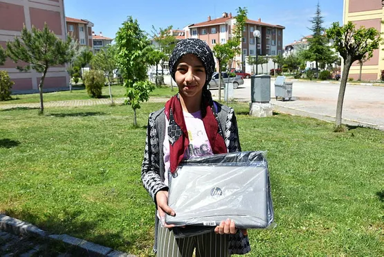 EBA TV için Başkan Erdoğan'dan bilgisayar istedi! Elif'in istediği bilgisayarı kaymakam teslim etti