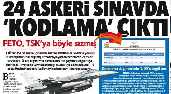 Deniz Kuvvetleri Harp Okulu ve Deniz Astsubay Meslek Yüksek Okulu’nda 2013’teki mülakat komisyonunda kriptolu şifreleme sistemiyle, FETÖ’cü olmayan adayları elimine eden istihbarat subayları hakkında iddianame düzenlendi. Savcılığın tespitlerine göre, her iki mülakata girip kesin kayıt yaptıran 729 kişiden 724’ü FETÖ’ye müzahir adaylardan oluşuyor…