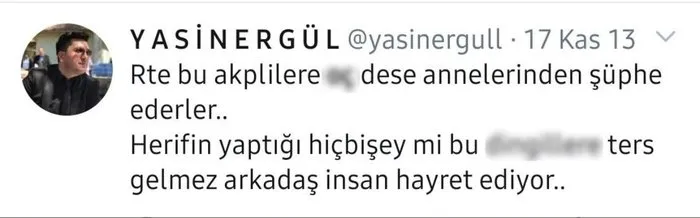 CHP'li Ergül'ün 17 Kasım 2013'te "RTE Bu akplilere (..) dese annelerinden şüphe ederler. Herifin yaptığı hiçbişey mi bu dingillere ters gelmez arkadaş insan hayret ediyor" dediği sosyal medyada yer aldı.