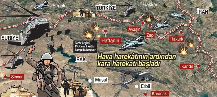 Şırnak'ın Uludere ilçesinin karşısında bulunan ve terör örgütü PKK'nın lojistik can damarı niteliğinde olan Haftanin bölgesine önceki gece karadan ve havadan yapılan operasyona 2. Ordu Komutanlığı bünyesindeki Şırnak Akçay'da konuşlu 6. Motorize Piyade Tugayı, Silopi'deki 23. Motorize Tugayı, Uludere Gülyazı'daki 48. Motorize Piyade Tugayı ve Şırnak 21. Motorize Piyade Tümeninden seçkin subaylar katıldı. 2. Ordu Komutanı Korgeneral Sinan Yayla ile 4 generalin sahada bizzat sevk ve idare ettiği harekâtta Haftanin'deki irili ufaklı 9 ayrı kamp ve barınma alanı, silah ve mühimmat depoları hedef alınarak yerle bir edilecek.