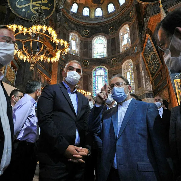 "Restoratörlerden, mimarlardan, Diyanet İşleri Başkanımız ve ekibinden hem de tarihçilerden oluşan bir ekiple içeride bir durum değerlendirmesi yaptık. Yapılması uygun olacak düzenlemelerden bahsettik. UNESCO'dan da bir temsilcimiz vardı. Şimdi bütün bunları derleyip toparlayıp Sayın Cumhurbaşkanı'mızla da son bir kez daha değerlendirip inşallah 24 Temmuz'da cuma namazına hazır hale getireceğiz."