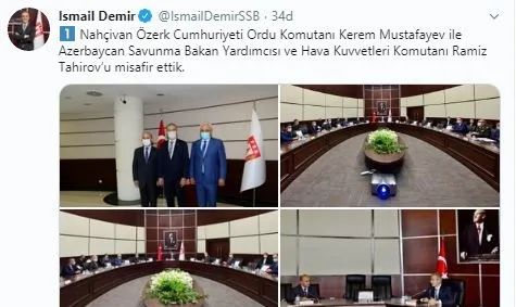"Nahçivan Özerk Cumhuriyeti Ordu Komutanı Kerem Mustafayev ile Azerbaycan Savunma Bakan Yardımcısı ve Hava Kuvvetleri Komutanı Ramiz Tahirov'u misafir ettik.
