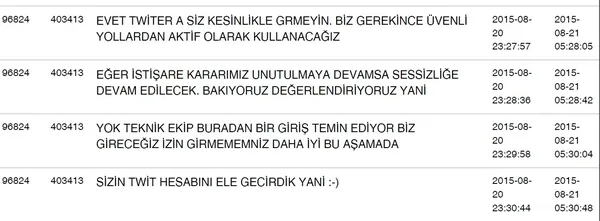 Zekeriya Öz'ün örgütün kendisine getirdiği twettır yasağına sinirlenerek bir Bylock arkadaşına 5 ayrı sahte hesap açtığını belirtmesi ve "5 hesap var, onlar izin vermezse buradan en ağır yazıyı yazarız, izin istedik ama adamlar dönmedi bile… Ben @HukuksaM'dan yazarım ne istersek. Bu hesabın benim olduğunu kimseye söyleme ama herkese tavsiye et" demesi dikkat çekiyor. Ayrıca Öz'ün örgütün twettır yasağına 29 Eylül 2015 günlü Bylock yazışmasında şu ifadelerle isyan ettiği anlaşılıyor: "Sessiz kalsak daha fazla yükleniyorlar. Hakkımda yazılanların yarısı istişare heyetinden(FETÖ istişare heyetini kasdediyor) birisi için yazılsaydı böyle sessiz mi kalacaktı adamlar. Heyet ya cevap ve savunma hakkı hazırlasın ya da ben kafama göre hazırlayacağım. Hava hoş ama hakaret ve küfürleri biz yiyoruz. Tweetır hesabının şifremi verdik ama hikaye oldu. "