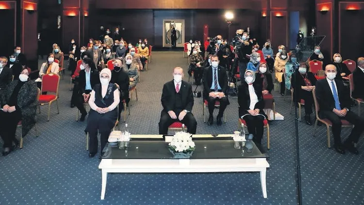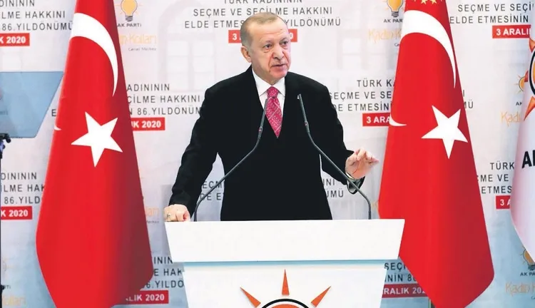 Cumhurbaşkanı Recep Tayyip Erdoğan, dün Türk kadınının seçme ve seçilme hakkını elde etmesinin 86. yıldönümü dolayısıyla AK Parti Kadın Kolları Başkanlığı tarafından AK Parti Genel Merkezi'nde düzenlenen "Kadın Hakları Günü" buluşmasına katıldı. Erdoğan'ın burada yaptığı konuşmadan satırbaşları şöyle: Bugün kadın hakları borazanlığı yapanların kadını insan olarak bile kabul etmediği bir kültürel geçmişten geldiklerini unutmadık. Aynı dönemde bizim toplumumuzda kadın, devletin kuruluşundan vatanın savunulmasına, üretimden aileye kadar tüm alanlarda en ön saflarda yer alıyordu. Bunun için bizim milletimizin ataerkil veya anaerkil değil, aileerkil bir millet olduğunu söylüyoruz.