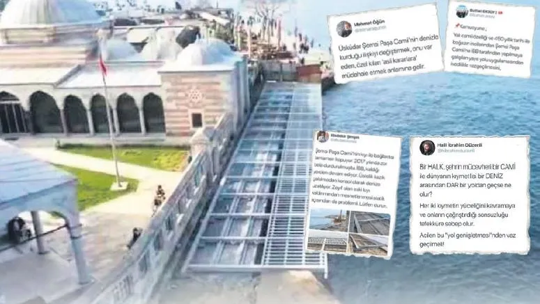 İstanbul Büyükşehir Belediyesi (İBB) "Kuşkonmaz Camisi" olarak da bilinen Üsküdar'daki tarihi Şemsi Ahmet Paşa Camisi'nin sahil bölümüne sökülüp takılabilen çelik konsol sistemli yürüyüş yolu çalışmalarına başladı. Camiye yalı özelliğini kaybettirecek projeye sosyal medyadan tepki yağdı. Şemsi Ahmet Paşa tarafından, Mimar Sinan'a yaptırılan 441 yıllık caminin önüne 3.5 yıl önce İBB tarafından kazıklı yol yapımına başlanmış, ancak camide çatlaklar oluştuğu için gelen tepkiler üzerine proje iptal edilmişti. Caminin deniz kenarına yol çalışmasını yeniden başlatan İBB, sökülüp takılabilen çelik yapı ile yaya geçişi yapıldığını belirterek, "Tarihi dokuya, ağır ve sert zemin uygulaması yapılmayarak doku bütünlüğü de sağlanıyor. Ayrıca, denizin dolgulanması için kazık sistemi yapılmayarak, tarihi caminin daha önce yaşadığı gibi sarsıntılarla çatlaması ve geri dönüşü olmayacak hasarlar da engellendi" açıklamasını yaptı. Vakıflar Genel Müdürü Burhan Ersoy ise caminin sahil kısmında yapımı devam eden yaya yolu çalışmasından ivedilikle vazgeçilmesini aksi takdirde, gerekli girişimlerde bulunacaklarını kaydetti. Ancak tamamlandığında camiye yalı özelliğini kaybettirecek projeye mimarlar da tepki gösterdi. İşte o tepkiler: