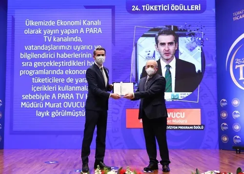 Ekonomi kanalı olarak yapan A Para TV kanalında vatandaşları uyarıcı ve bilgilendirici haberlerinin yanı sıra gerçekleştirdikleri haber programında ekonomide tüketicilere de yararlı içerikleri kullanmaları sebebiyle A Para TV Haber Müdürü Murat Ovucu'ya verildi.
