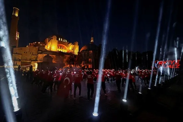 İletişim Başkanlığı'ndan Ayasofya ve Galata'da '15 Temmuz' ışık gösterisi
