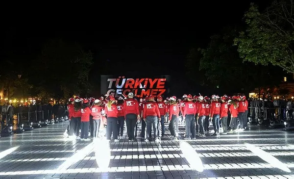 Işıklı gösteride milli iradenin zaferi "Türkiye Geçilmez" sloganıyla anlatıldı.