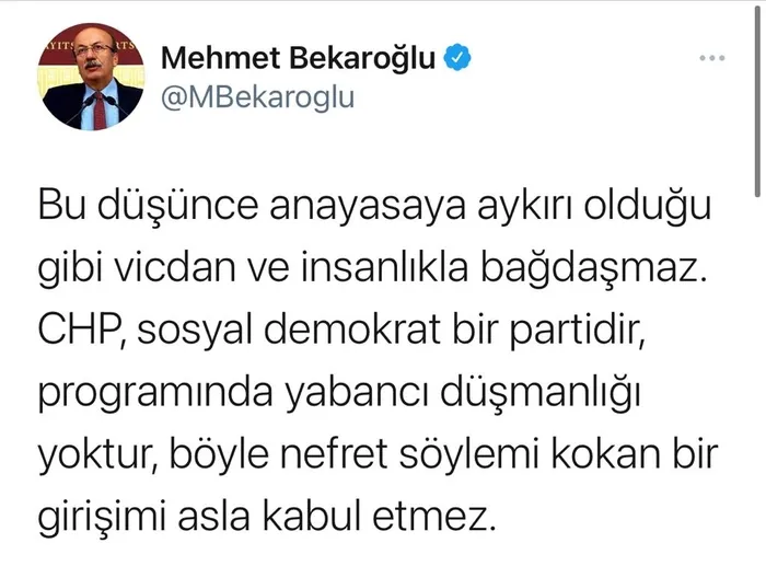 CHP İstanbul Milletvekili Mehmet Bekaroğlu Özcan'ın sözlerine sert bir yanıt vererek "Bu düşünce anayasaya aykırı olduğu gibi vicdan ve insanlıkla bağdaşmaz. CHP, sosyal demokrat bir partidir, programında yabancı düşmanlığı yoktur, böyle nefret söylemi kokan bir girişimi asla kabul etmez" demişti. HDP Diyarbakır Eski Milletvekili Ziya Pir ise "Buyrun... Bunlar Avrupa'lı faşistleri çoktan geçti!" ifadelerini kullanmıştı.