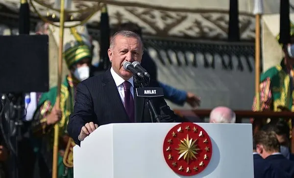 BAŞKAN ERDOĞAN: Ahlat şehrinin Malazgirt Savaşı’nın kazanılmasında büyük önemi var. Ahlat mezar taşları, milletimize ait tapu senetleridir. Gençler, sizlere de 2053 ve 2071 vizyonlarıyla Türkiye’yi, en güçlü ülkeler arasında ilk sıralara yerleştirme görevini veriyoruz