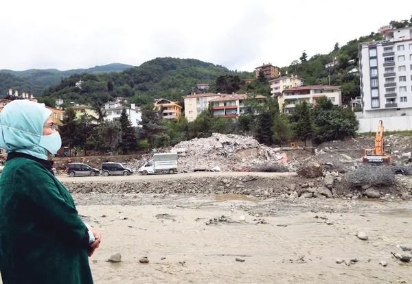 Emine Erdoğan burada gazetecilere yaptığı açıklamada, bölge halkına geçmiş olsun dileklerini iletti. Büyük bir felaket yaşandığına işaret eden Erdoğan, "Gerçekten büyük bir felaket. Öncesinde televizyonlarda da izlemiştik. Çok üzüldük, onlarla birlikte gerçekten çok ağladık" dedi. Dere yataklarına ev yapılmaması gerektiğini ifade eden Erdoğan, "Bakanlarımızın ifadelerine göre, en çok dere yataklarına yapılan evlerin yanlış durumlarından dolayı bu felaketin olduğu. Tabii ki bu felaket her zaman olan bir şey değil ama bunlar da bunu hızlandırdı maalesef" diye konuştu. Devletin vatandaşların yaralarını kısa sürede sardığını vurgulayan Emine Erdoğan, şöyle devam etti: "Devletimiz, belediyelerimiz, STK'larımız çok kısa zamanda buralara ulaşarak, gereken her şeyi en kısa zamanda, hatta Avrupa'da yapılamayan şeyleri de ilk defa Türkiye'de yaptık. Hem insan hem mekan hem de sokakların temizliği açısından kurumlarımız üzerine düşeni çok kısa zamanda yapmış. Ben de bire bir bunu burada teşhis ediyorum."