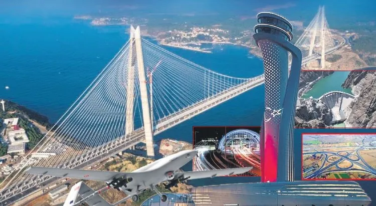 SAVUNMA sanayiinin millileştirilmesi yönünde büyük adımlar atılırken, bu kapsamda milli savaş gemisi (MİLGEM), Atak helikopteri, eğitim uçağı Hürkuş, modern piyade tüfeği, milli tank Altay, Anka, yerli İHA'lar, SİHA'lar, TİHA'lar, uzun ve orta menzilli tanksavar füze sistemleri gibi projeler hayata geçirildi. Asya ve Avrupa'yı deniz altından birbirine bağlayan 150 yıllık rüya Marmaray hizmete açıldı. Türkiye ilk kez hızlı trenle tanıştı. Türkiye'nin dört bir yanına bölünmüş yollar yapıldı. Marmaray'a kardeş Avrasya Tüneli açıldı. İstanbul boğazına 3'üncü köprü Yavuz Sultan Selim Köprüsü, İstanbul-İzmir Otoyolu, Osmangazi Köprüsü hizmete girdi. 150 milyon yolcu kapasitesiyle dünyanın en büyüğü olan İstanbul Havalimanı'nın ilk etabı açıldı. Birçok ilde şehir hastaneleri açıldı. Artvin'de Türkiye'nin en yüksek, dünyanın ise çift eğrilikli ince kemer baraj kategorisinde 3'üncü en yüksek barajı olacak Yusufeli Barajı ve Hidroelektrik Santrali hizmete girmek üzere. Rize'de kuzey ile güneyi birbirine bağlayan Ovit Tüneli tamamlandı.