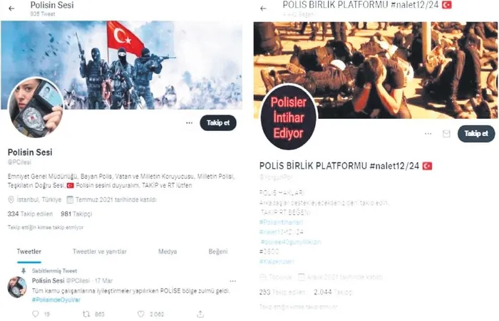 "Polis Mevzuat" isimli sosyal medya hesabının, firari organize suç örgütü lideri Sedat Peker'in işbirliği yaptığı FETÖ'cü firari gazeteci Erk Acarer'in paylaşımlarını ve yayın yaptığı terör uzantılı kanalları beğendiği görüldü.