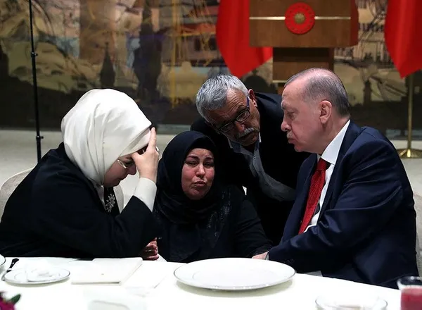 Başkan Recep Tayyip Erdoğan dün Cumhurbaşkanlığı Dolmabahçe Çalışma Ofisi'nde gerçekleştirilen iftarda, şiddet mağduru kadınların yakınlarıyla bir araya geldi.