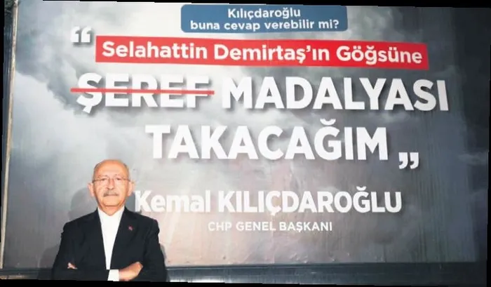 CHP Lideri Kemal Kılıçdaroğlu'nun, kendisini eleştirmek için asılan afişler önünde verdiği poz ve yaptığı paylaşım annelerin tepkisine neden oldu. CHP'li isimlerin tepki çeken sözlerinin yer aldığı afişlerde Kılıçdaroğlu'nun "Selahattin Demirtaş'ın göğsüne şeref madalyası takacağım" sözlerinin yanı sıra CHP İstanbul Milletvekili Gürsel Tekin'in "2023 seçimlerini kazanırsak HDP'ye bakanlık verilebilir" ifadeleri yer aldı. Başka bir afişte ise CHP İstanbul Milletvekili Sezgin Tanrıkulu'nun "İktidara gelirsek İHA ve SİHA üretimi duracak" cümlesine yer verildi. Söz konusu afişlerin önünde poz veren Kılıçdaroğlu, sosyal medya hesabından paylaştığı fotoğrafın altına da "Biz barışacağız" notunu düştü.