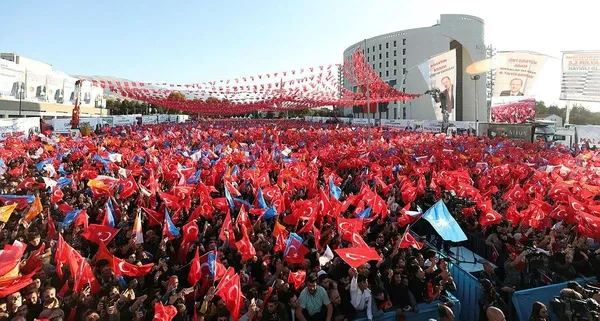 HER KUMPASI MİLLETİMİZLE BOZDUK: Siyasi istikrarsızlığı yeni yönetim sistemimizle aştık. Terör sorununu sınır ötesi çalışmalarla kaynağından kestik. Yarın Diyarbakır'dayım. Önceden akşam 8 dediğinde dışarı çıkamazdın. Şimdi herkes sabaha kadar dışarda dolaşabiliyor. Önümüze kurulan her tuzağı, arkamızdan çevrilen her kumpası milletimizden aldığımız destekle bozduk.